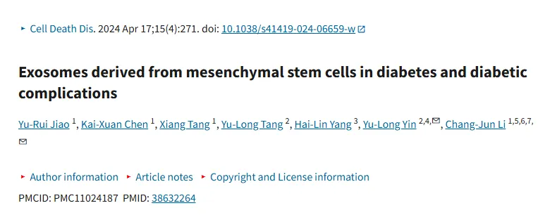 研究表明,干細(xì)胞外泌體對(duì)糖尿病并發(fā)癥也有良好的改善效果。