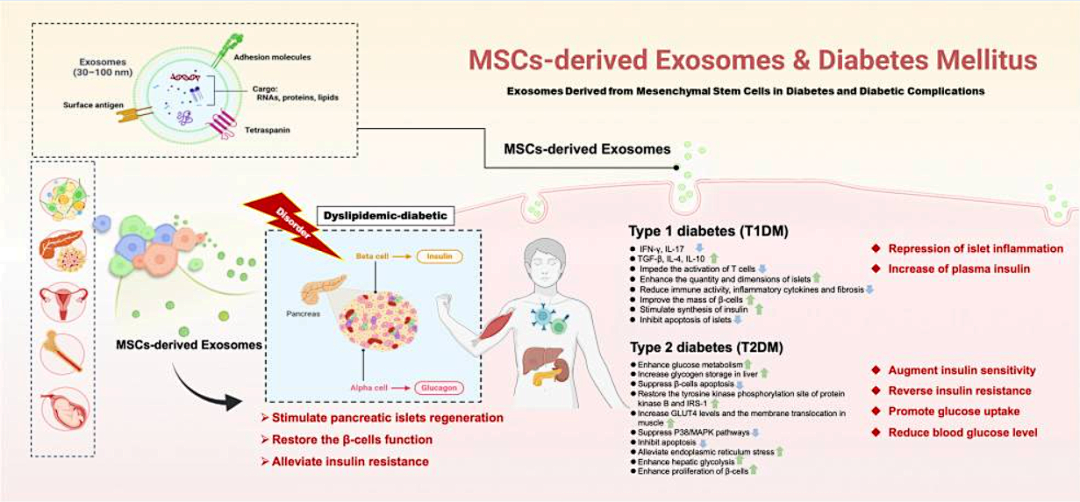 近年來(lái),基于間充質(zhì)干細(xì)胞(MSC)及其外泌體的治療策略逐漸成為研究熱點(diǎn)。干細(xì)胞外泌體憑借其細(xì)胞替代、免疫調(diào)節(jié)、微環(huán)境重塑及代謝穩(wěn)態(tài)調(diào)控的多維度作用,為糖尿病及其并發(fā)癥的治療提供了新的思路與方法,也為患者帶來(lái)了前所未有的希望。